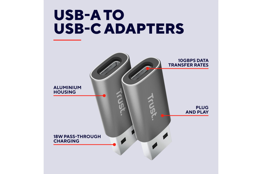 Особливості товару Trust Адаптер Calyx USB-C > USBA3.2, 2шт, чорний