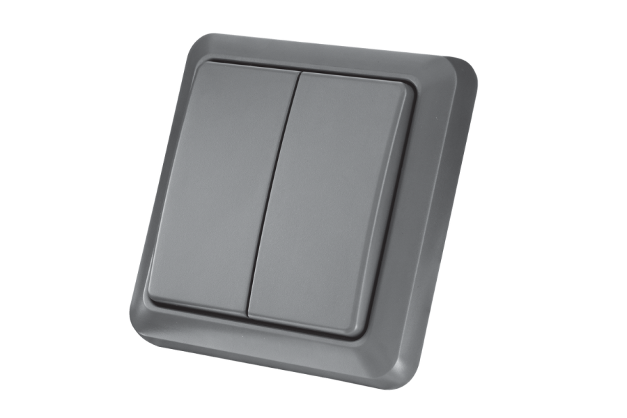 Подвійний бездротовий настінний вимикач призначений для керування двома та великою кількістю освітлювальних приладів та пристроїв поза приміщенням