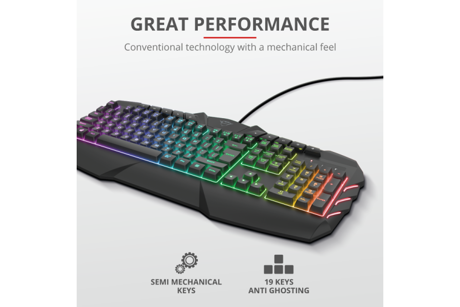 Комплектація | Ігрова клавіатура. Посібник користувача. Наклейка з ігровою тематикою. |