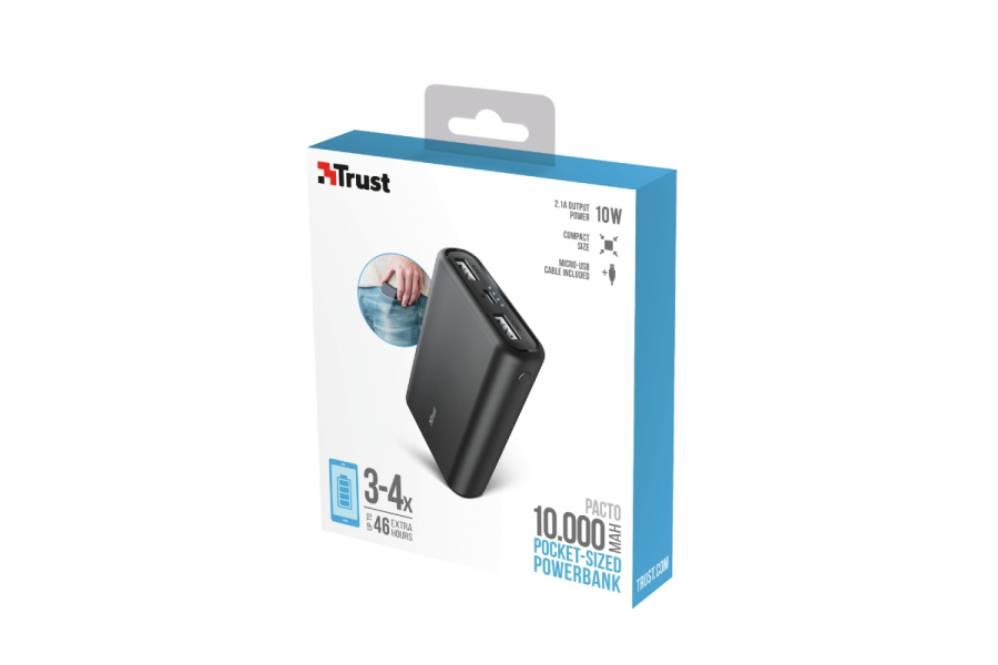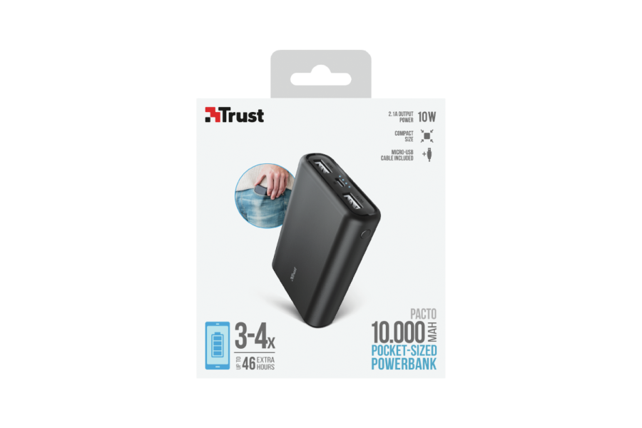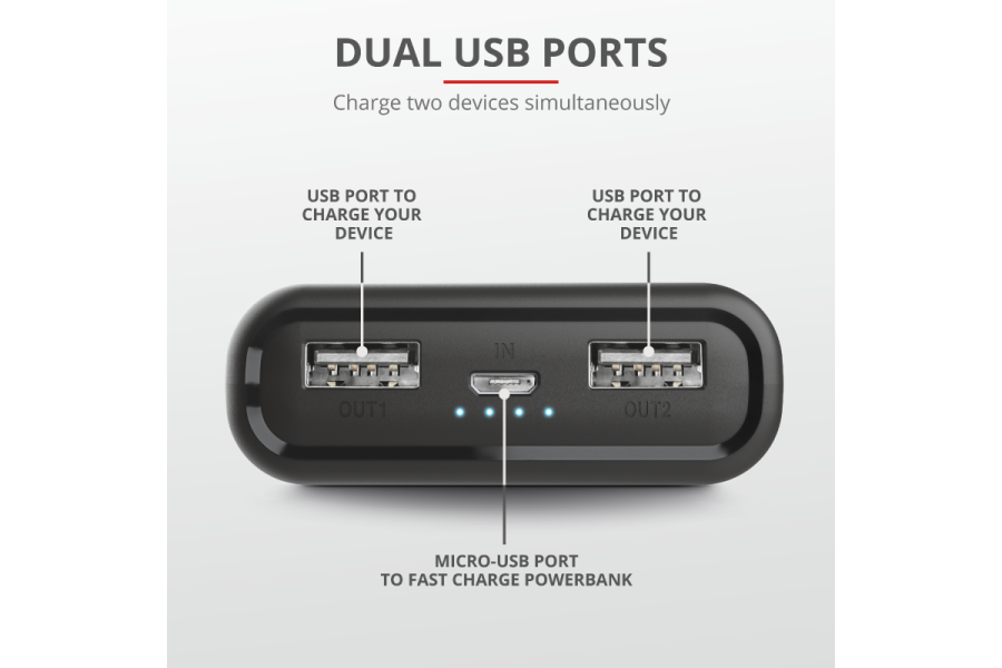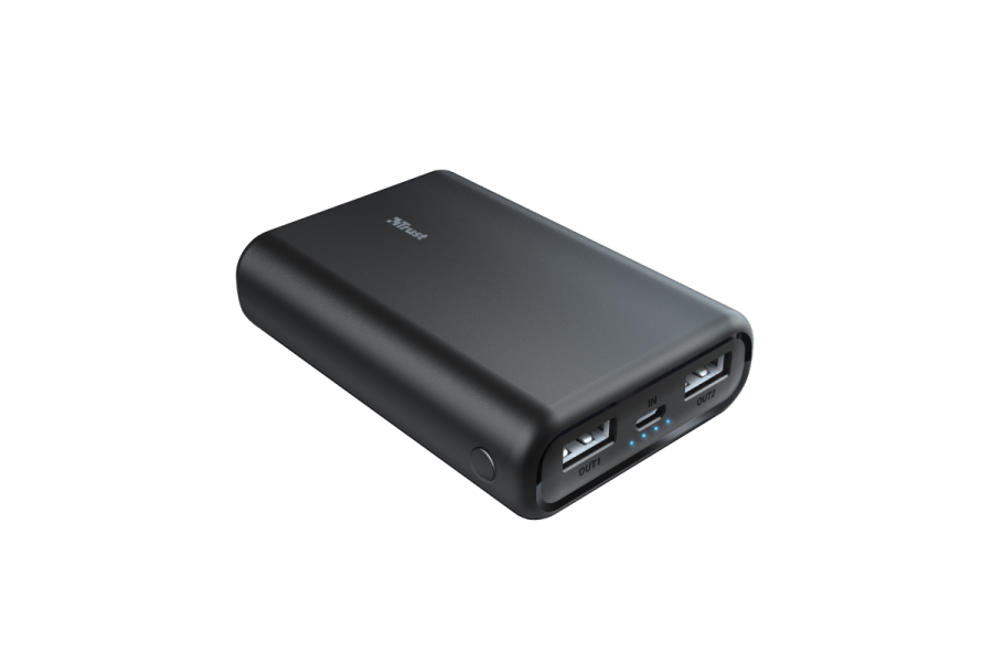 Компактний зовнішній акумулятор ємністю двома роз'ємами USB і вбудованою батареєю ємністю 10,000 мАг