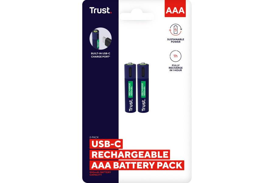 Особливості товару Trust Акумулятор AAА 400 мАг, TYPE-C, 2 шт, синій