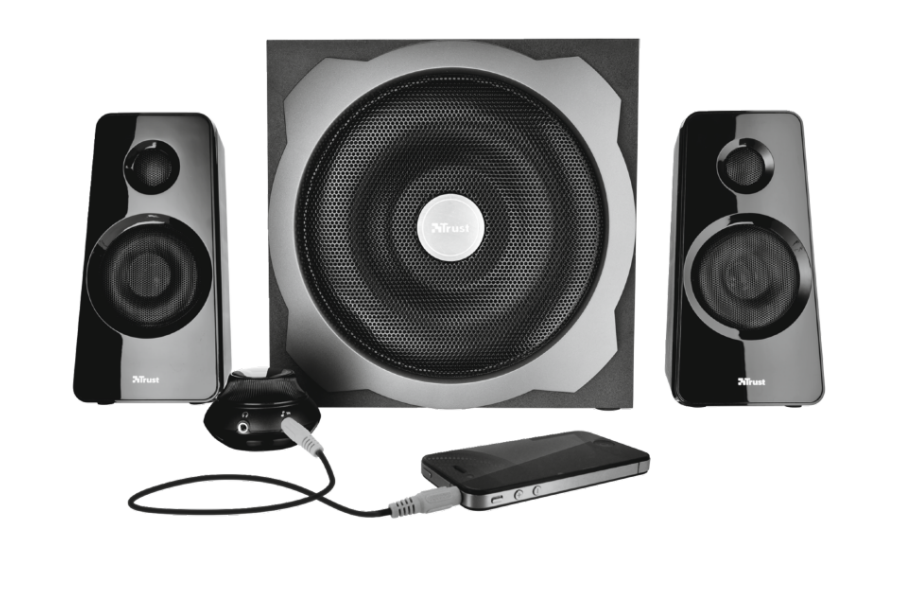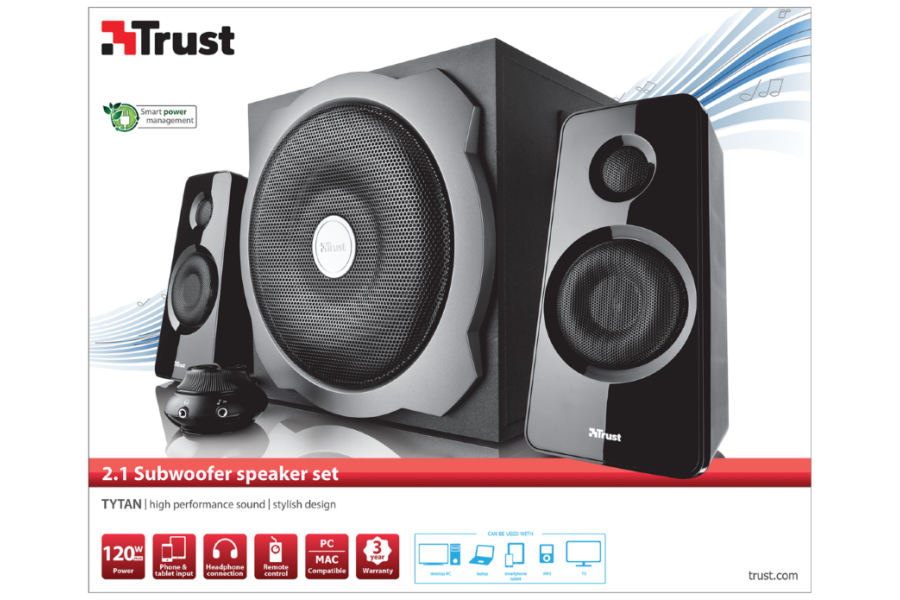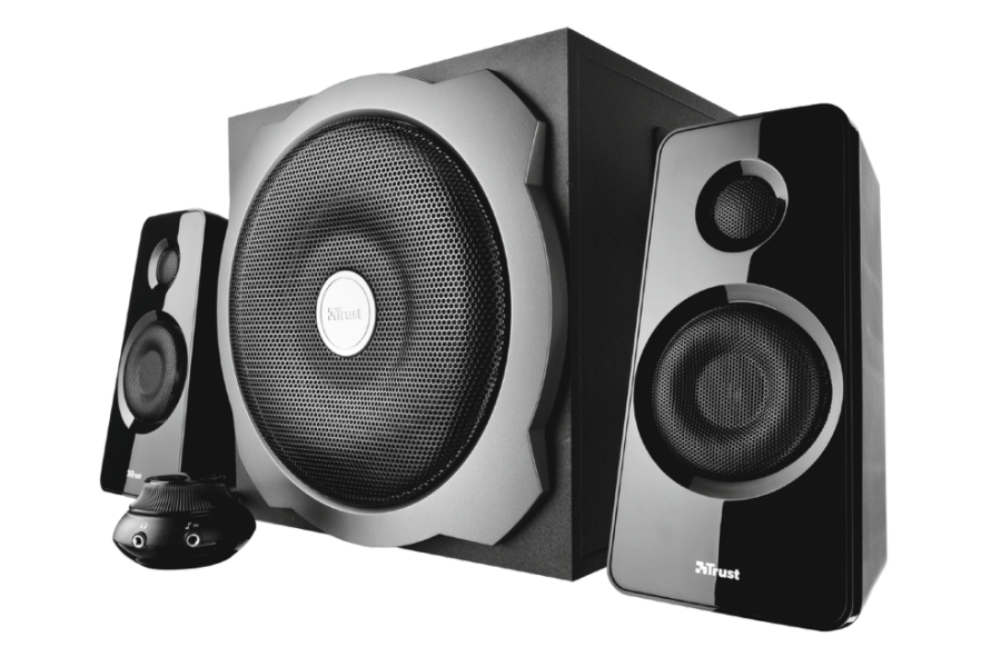 Набор колонок 2.1, включая деревянный динамик для низких частот (сабвуфер), со среднеквадратичной выходной мощностью 60 Ватт (пиковая мощность 120 Вт)