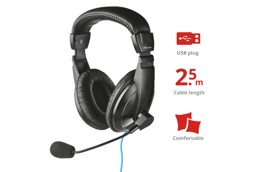 Высококачественная USB стереогарнитура с регулируемыми мягкими ободом и наушниками, обеспечивающими максимальный комфорт.