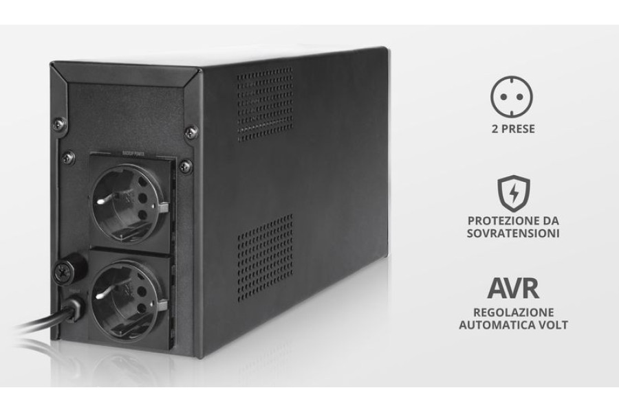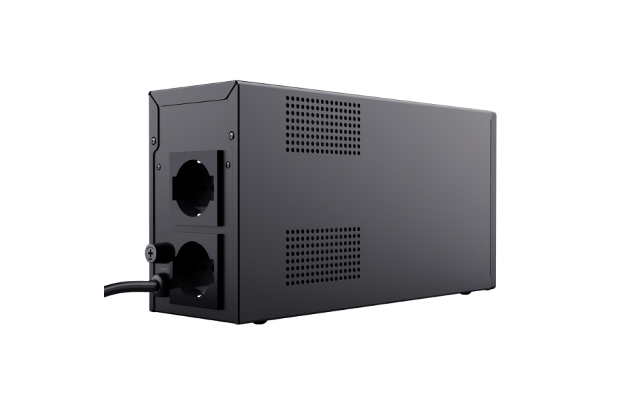 Источник бесперебойного питания (ИБП), 1000 ВА Надежный ИБП мощностью 1000 ВА с резервным питанием от батареи и с 2 розетками. Идеально подходит для питания и защиты электронных устройств.