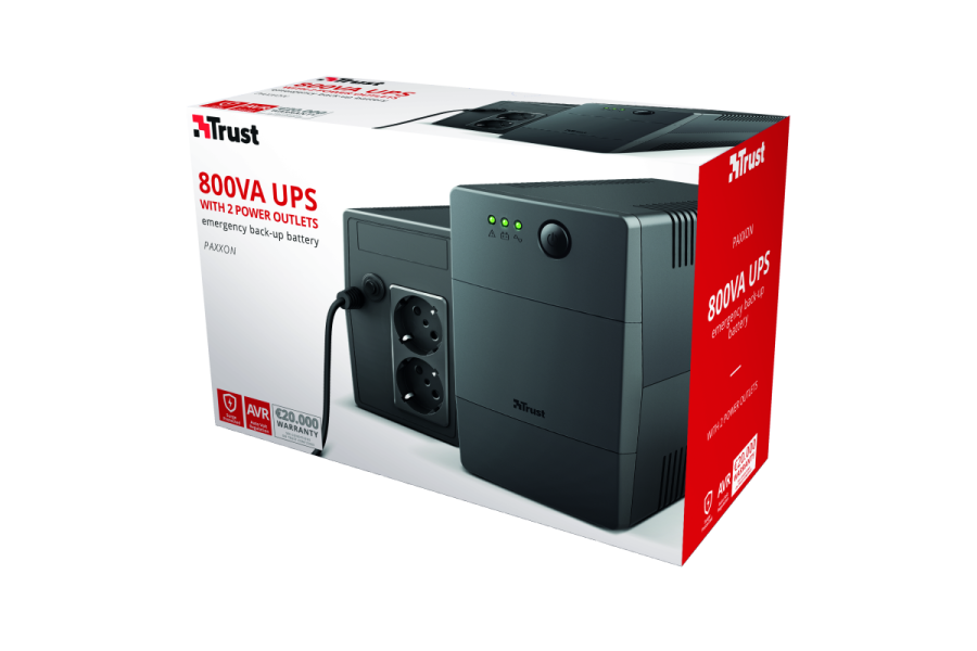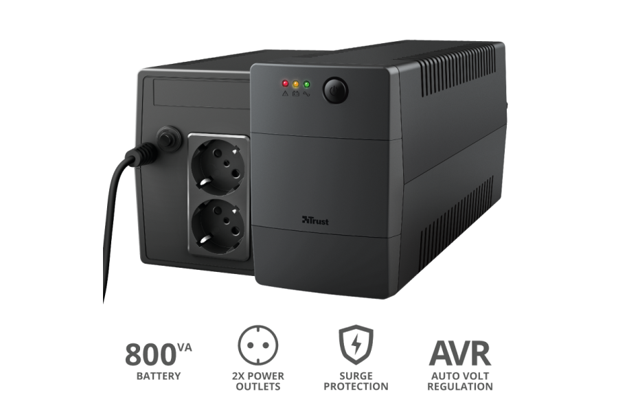 Надежный ИБП мощностью 800 ВА с резервным питанием от батареи и с 2 розетками. Идеально подходит для питания и защиты ваших электронных устройств