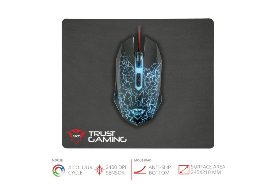 Игровая мышь с высоким разрешением (2400 точек на дюйм) и коврик с текстурным покрытием обеспечивают максимальную точность и удобство управления.