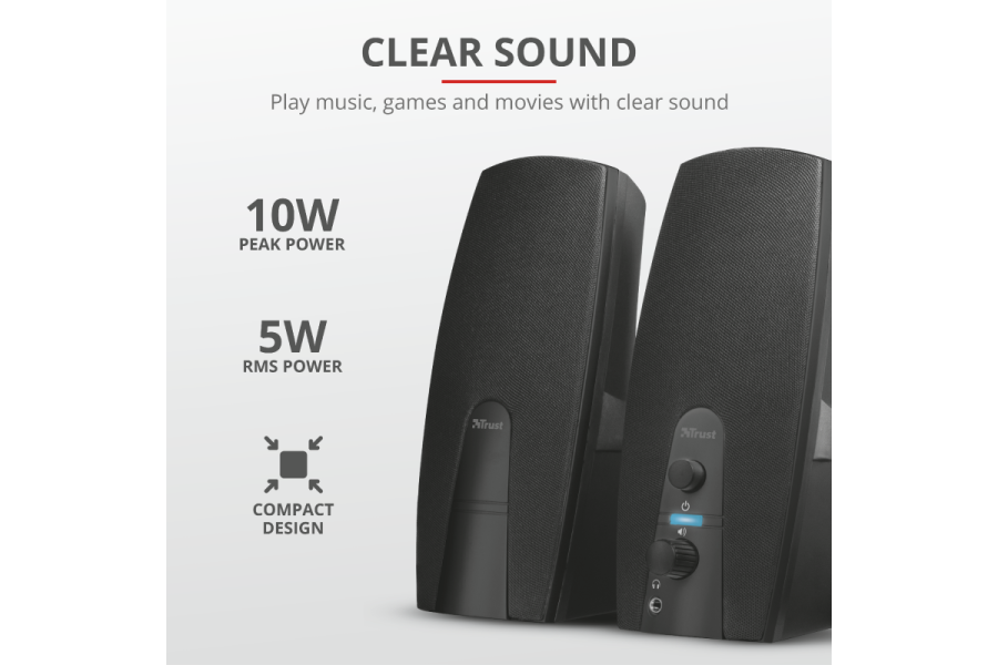 Компактный комплект стереодинамиков с общей средней выходной мощностью 5 Вт (пиковая мощность 10 Вт)
