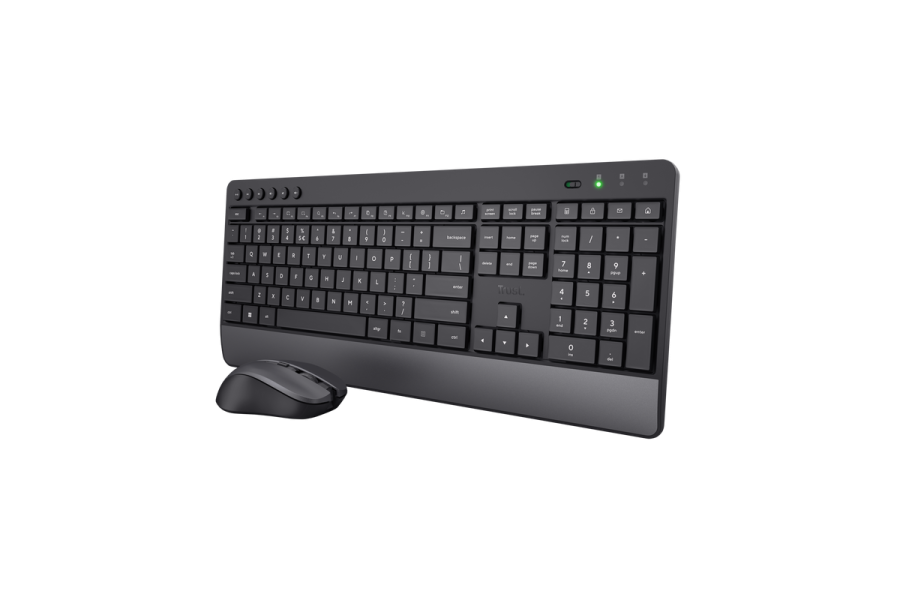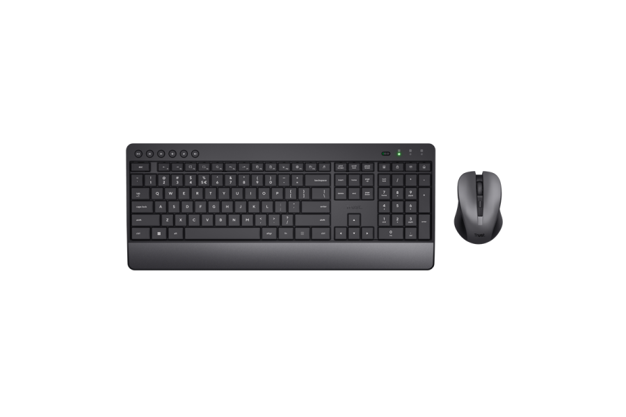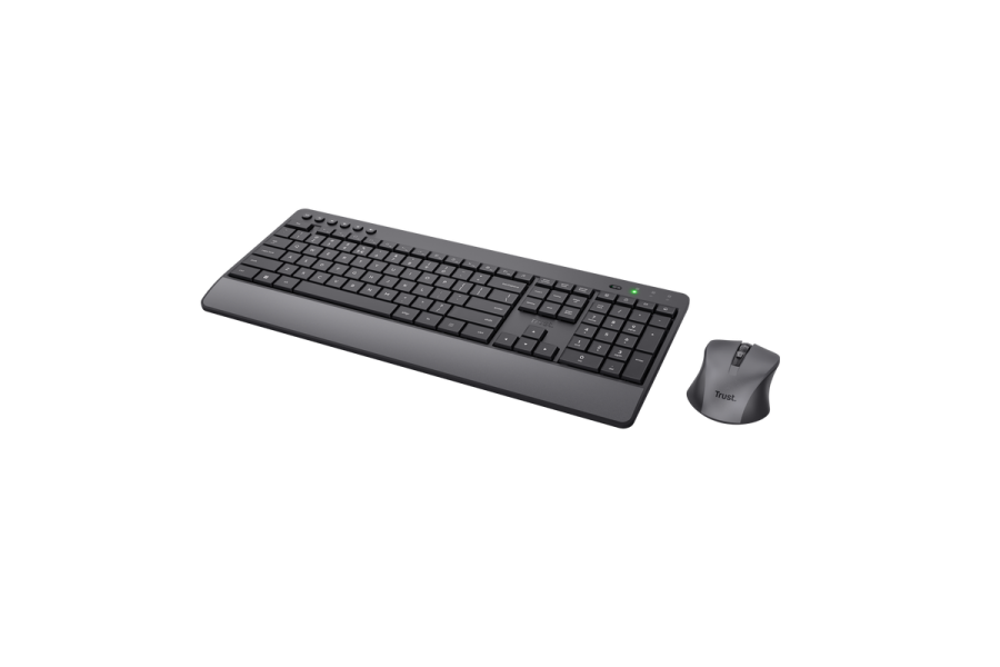 Комплектация | Беспроводная клавиатура. Беспроводная мышь. Приемник USB. 2 батарейки AAA для клавиатуры. 2 батарейка AAA для мыши. Руководство пользователя можно загрузить по ссылке trust.com/23942/download. |