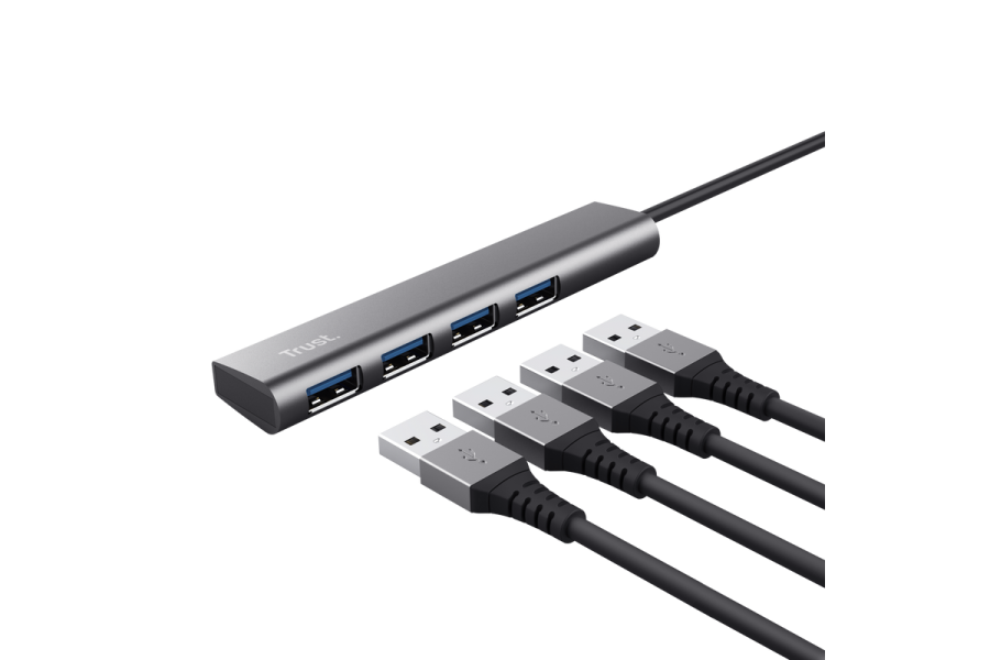 Стильный алюминиевый USB-концентратор создает на вашем компьютере с разъемом USB-C 4 дополнительных порта USB-A со скоростью 5 Гбит/с