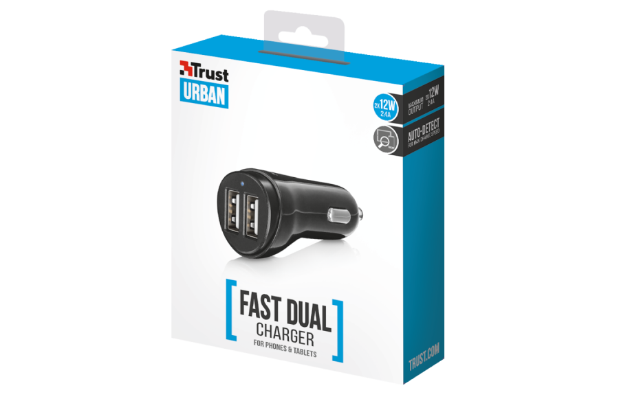Интеллектуальное автомобильное зарядное устройство с двумя портами USB для максимально быстрой зарядки двух устройств одновременно